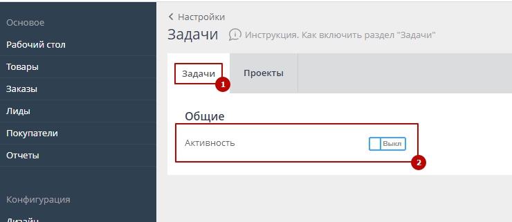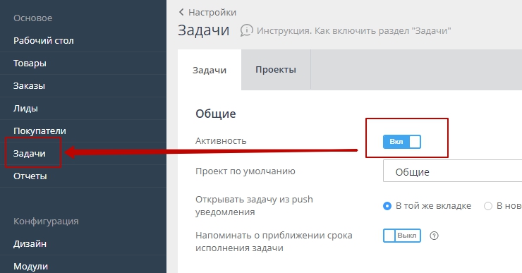 Как включить раздел "Задачи"