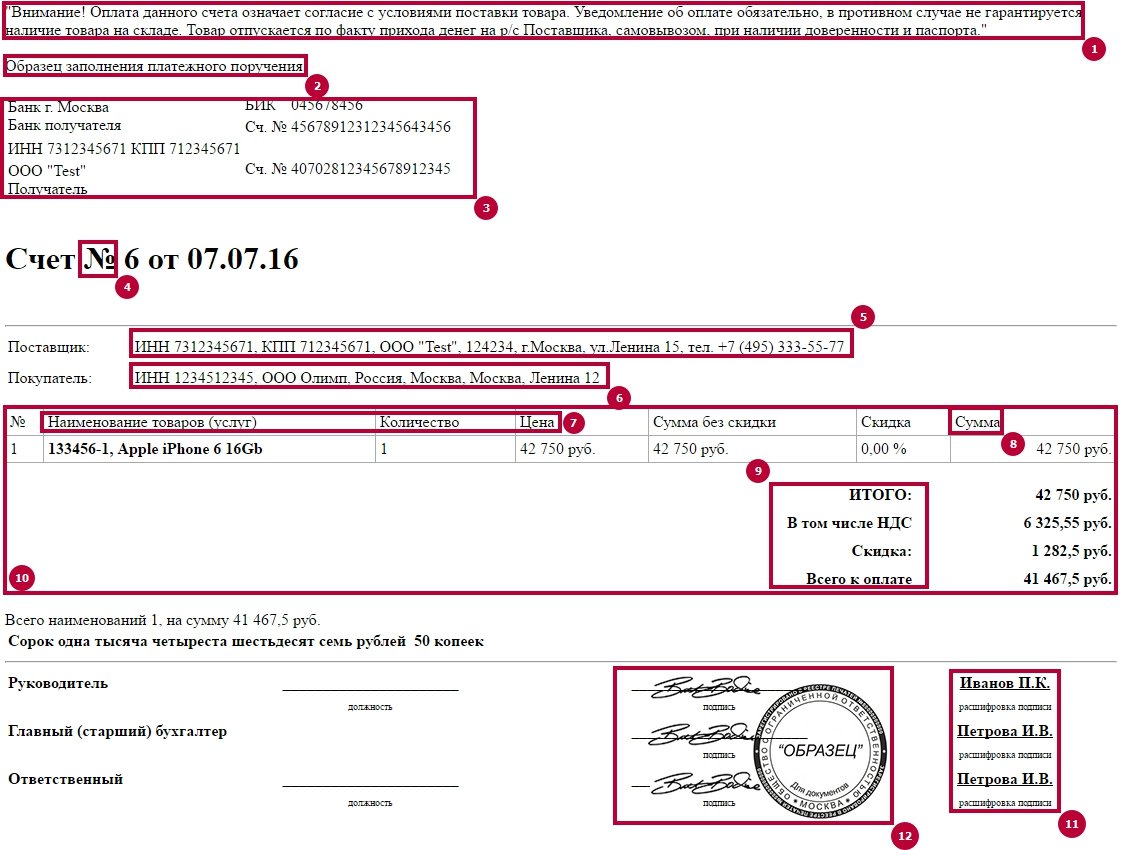 В статье рассмотрим печатную форму счета, какие поля можно менять, как загружать подпись, и другое.