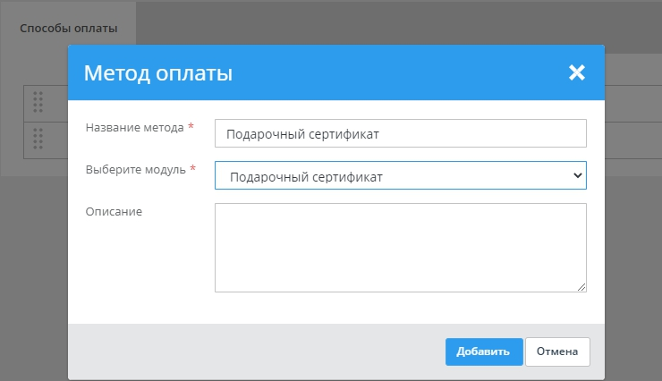 Добавление метода оплаты "Подарочный сертификат"